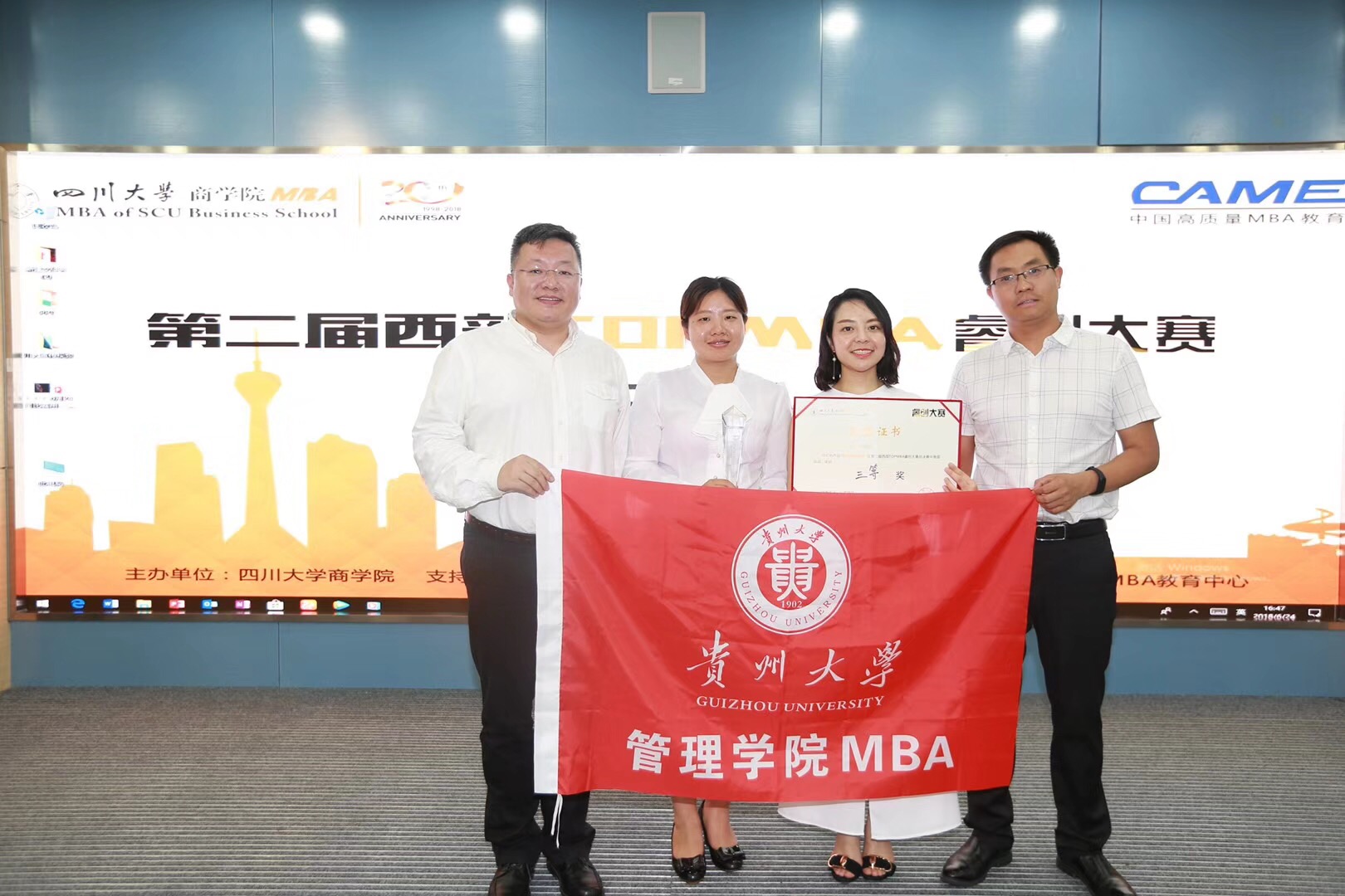 6月24日,由全国MBA教育指导委员会支持,四川大学商学院主办的第二届西部TOPMBA睿创大赛总决赛在四川成都举行。决赛集结了包含我校在内,来自四川,陕西、云南等西部地区10所著名高校的代表队进行终极角逐,我校选送的“物联网+惠洗衣”项目最终获三等奖荣誉。