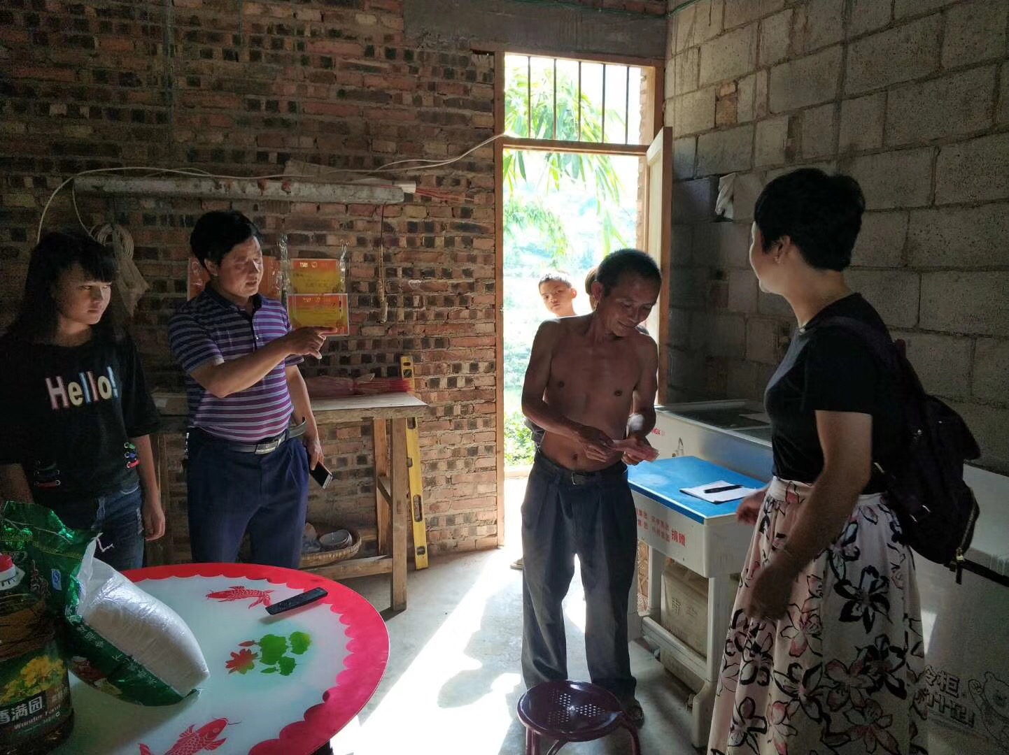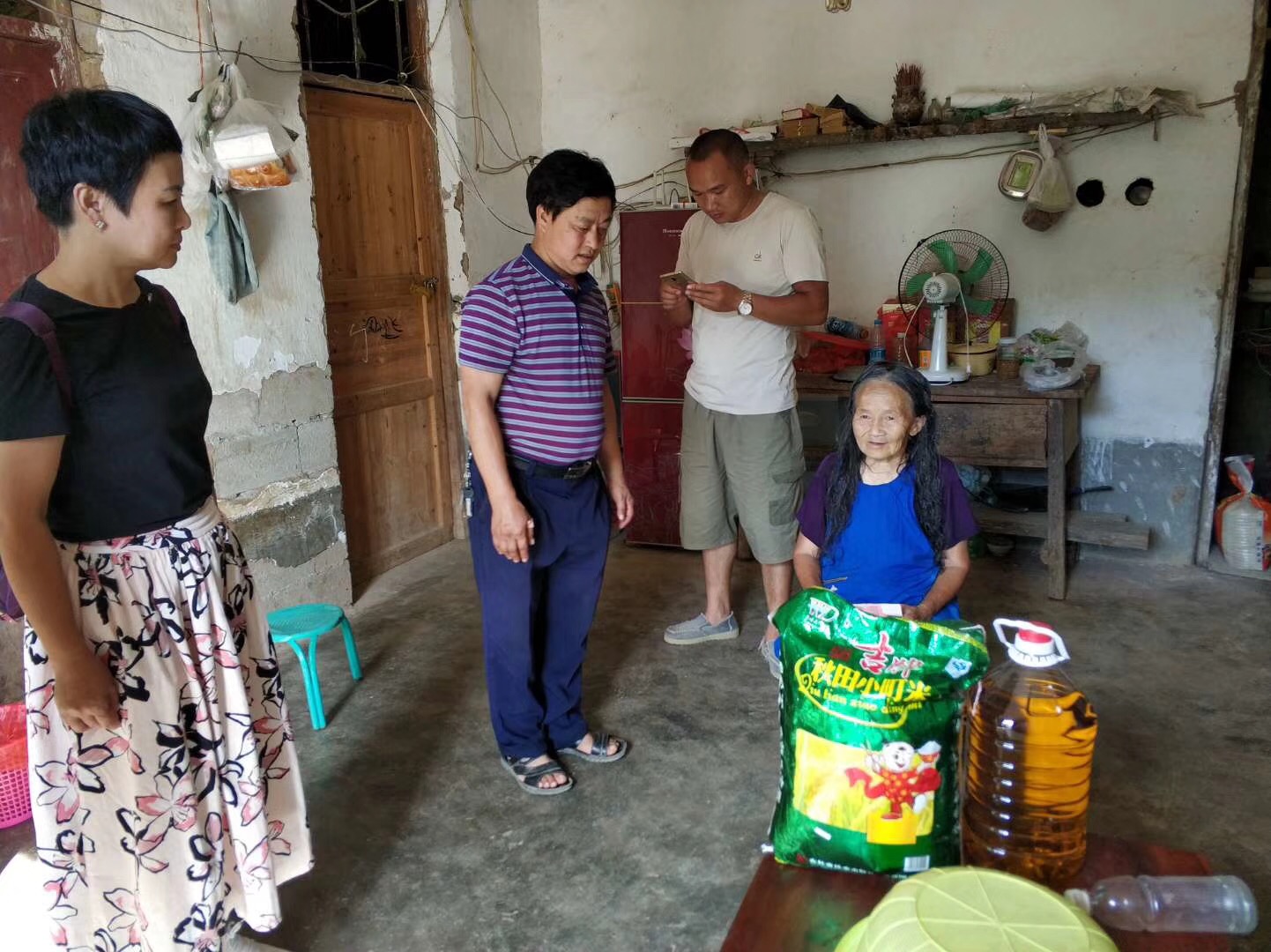 座谈会结束后,在里秀村党员活动室举行了捐赠仪式,并在村书记的带领下,我院MBA师生到里秀村特困户家进行了慰问,将慰问物品及捐款发放到特困户手里。