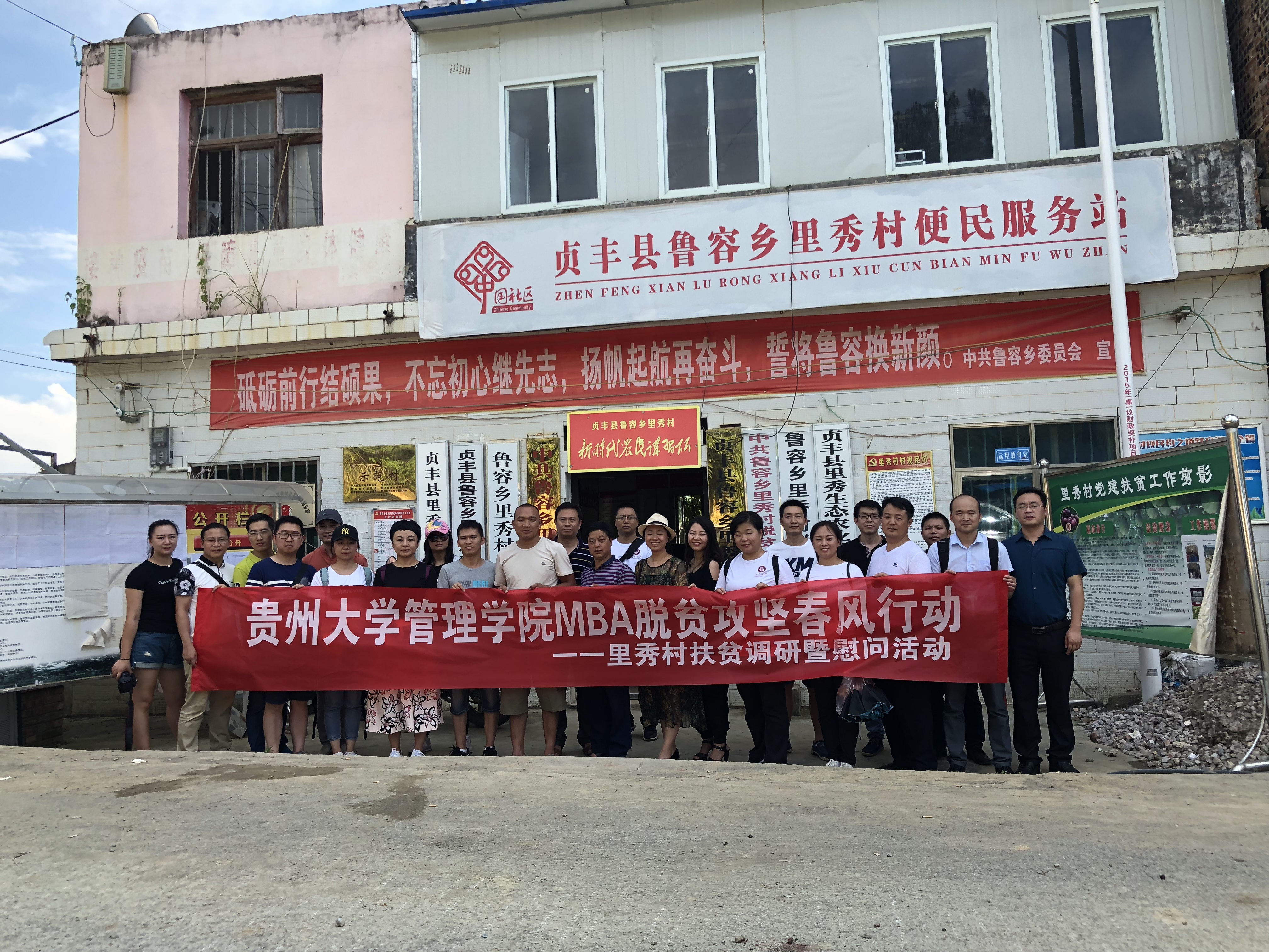为深入贯彻党的十九大精神,落实《贵州大学脱贫攻坚“春风行动”实施方案》和《贵州大学对口帮扶贞丰县精准扶贫行动实施方案》要求,按照以“发挥教育优势、参与精准扶贫、促进脱贫致富”行动的宗旨,我院积极利用管理学科优势和工商管理人才优势,并积极整合贵州金戈戟科技发展有限公司,共同扎实推进精准扶贫行动,2018年7月20日,我院MBA赴贞丰县鲁容乡开展扶贫调研暨慰问活动。