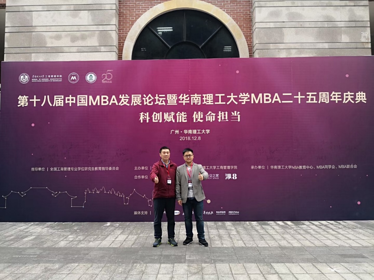 12月8日-12月9日,第十八届MBA发展论坛在华南理工大学隆重举行,本届以“科创赋能,使命担当”为主题,在此主题下还开设计了“创业创新”、“科技金融”、“MBA教育”、“主席圆桌会议”平行分论坛。来自全国200多所MBA院校师生,知名学者专家、企业家代表等700多人齐聚魅力羊城。乐动官方网站第八届MBA联合会主席秦振华同学和2018级MBA学生饶迅宁同学参加了本次盛会。