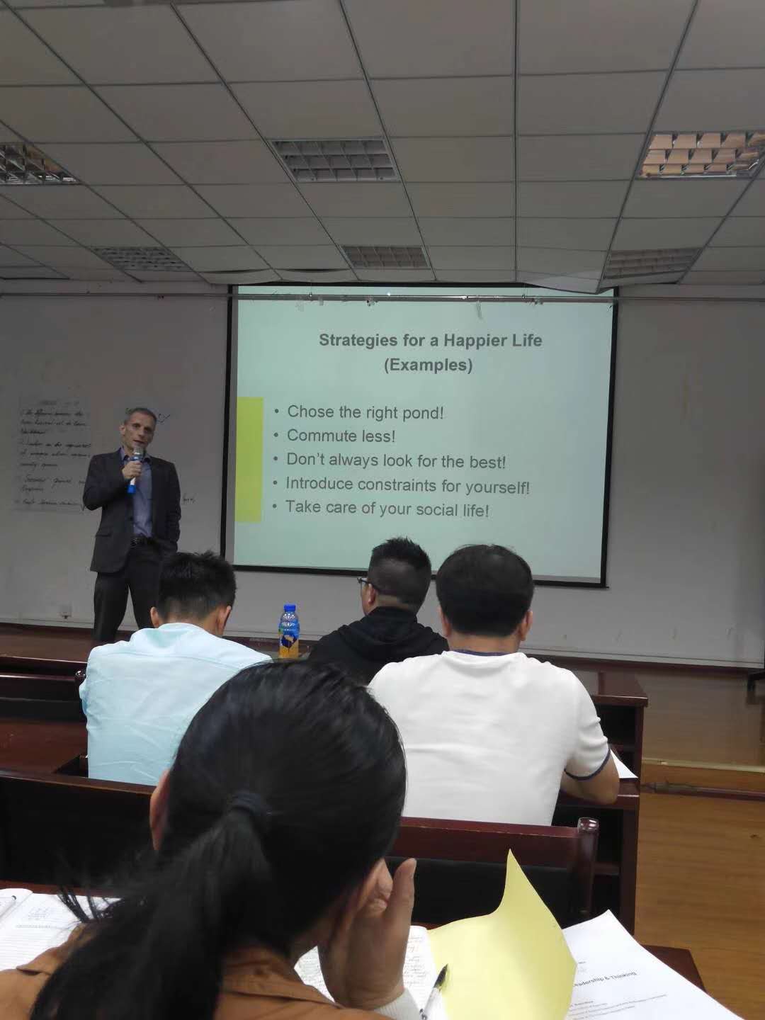 2019年5月31日14:00-16:00,乐动官方网站MBA教育中心邀请了瑞士西北应用科学与艺术大学的Mathias Binswanger教授为MBA学院讲座“幸福的跑步机( the Treadmills of Happiness)”。讲座在中心203教室成功召开,由贵州大学管理学院副院长周莉莉教授主持,MBA教育中心主任项凯标副教授、常务副主任何跃勇老师、贵州大学汤美润老师及中心其他工作人员和2016级、2017级、2018级各班同学等共计150余人参加讲座。