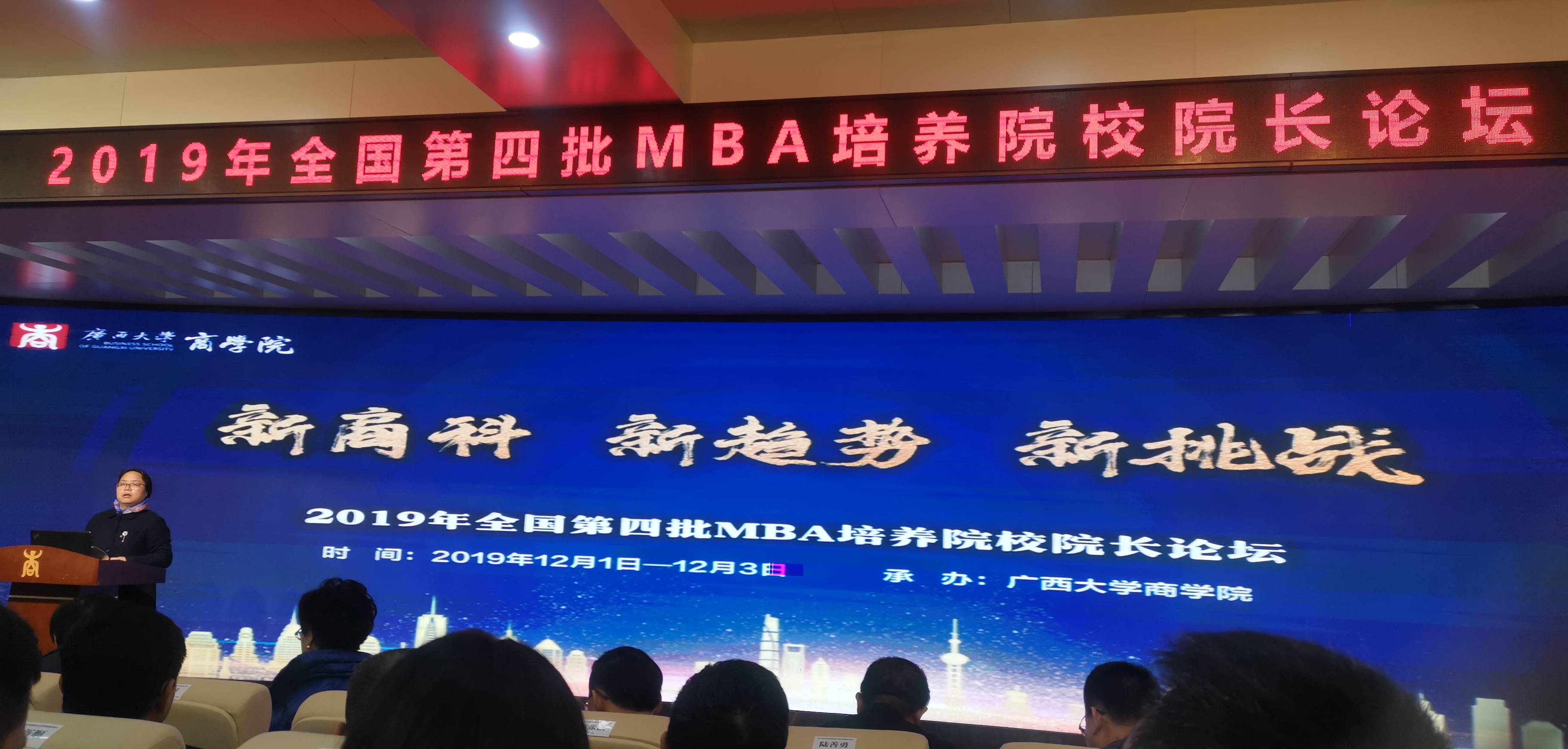 12月1—3日,2019年全国第四批MBA培养院校院长论坛在广西大学商学院隆重举行。乐动官方网站副院长周莉莉、MBA教育中心主任项凯标、MBA教育中心办公室主任邓琳参加了此次论坛。