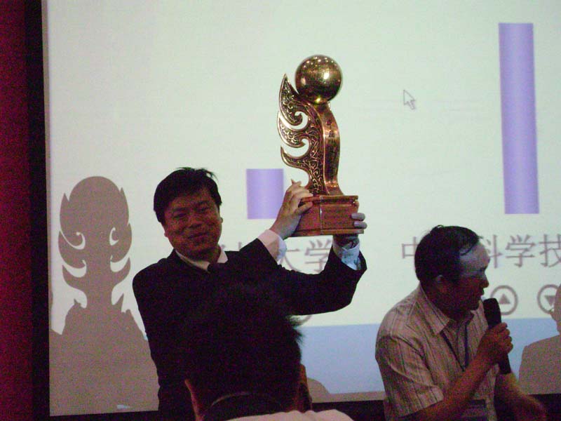 5月18日上午论坛申办大会上,中国科学技术大学以绝对优势获得第十一届中国MBA发展论坛主办权,图七、图八为中科大MBA联盟主席赵磊从历届论坛执行主席手中接过象征中国MBA“责任、专业、和谐、发展”精神的联盟杯和联盟旗。