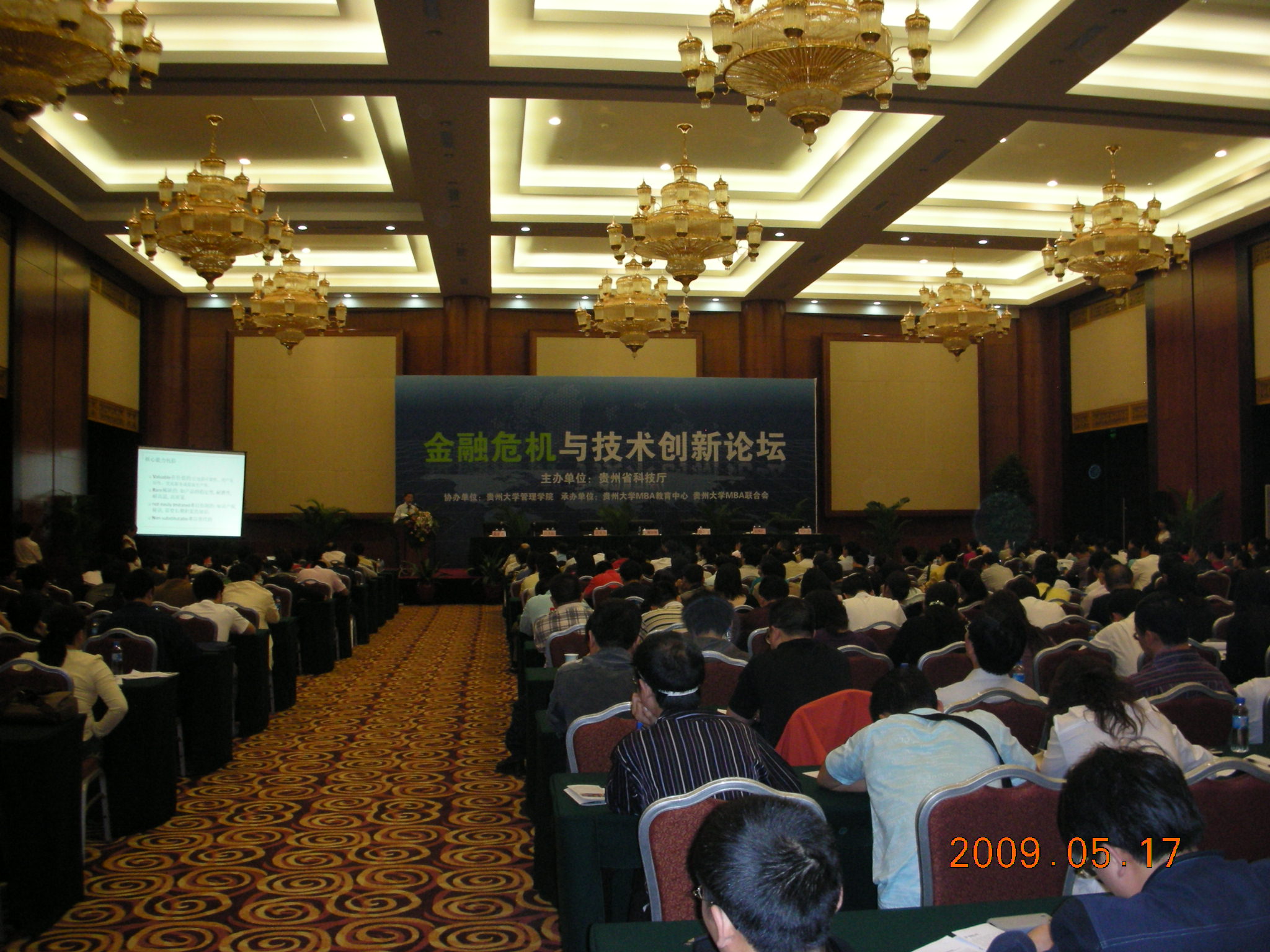 009年5月17日,在贵州省国际会议中心,由贵州省科技厅主办、乐动官方网站协办、贵州大学MBA教育中心和贵州大学MBA联合会承办的“金融危机与技术创新论坛”取得圆满成功。贵州省科技厅秦水介副厅长和陈汛副厅长、贵州大学常务副书记赵明仁教授和常务副校长封孝伦教授等领导出席了本次论坛,封孝伦教授代表贵州大学在论坛开幕式上作了热情洋溢的致辞。同时包括贵州省科技厅下属科研院所技术和管理骨干代表、贵州大学MBA学员、管理学院和经济学院相应专业硕士研究生、部分企业代表和MBA校内外导师近四百名参加了本次论坛。