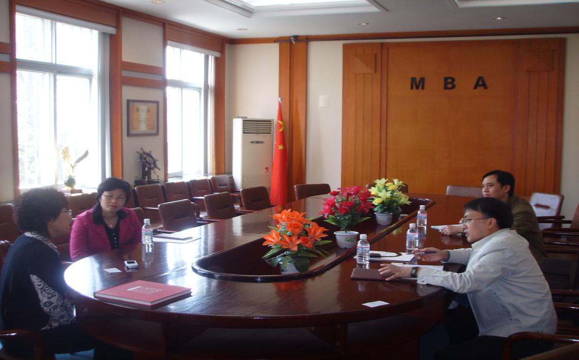 在培训期间,李烨博士和李会萍副教授还抽空到大连理工大学MBA教育中心、东北财经大学MBA学院进行了参观,并分别与大连理工大学MBA教育中心张艳秋副主任和东北财经大学MBA学院孔文副院长及相关人员就MBA招生宣传、MBA学费、教学管理等与相关人员进行了座谈交流。