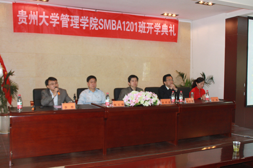 2012年4月21号在乐动官方网站报告厅举行了2012级春季SMBA开学典礼。SMBA1201班61名新学员、贵州大学研究生院副院长陈祥盛教授、乐动官方网站党委书记陶玉顺教授、管理学院副院长林岚涛教授、MBA任课教师代表、MBA教育中心全体工作人员参加开学典礼仪式。在开学典礼仪式上,贵州大学研究生院副院长陈祥盛教授代表学校向各位SMBA新学员表示衷心的祝贺和热烈的欢迎!管理学院副院长林岚涛教授与同学们交流了学习和科研的情况。SMBA1201班学员代表也做了精彩发言。仪式结束后,MBA教育中心主任李烨教授为SMBA1201班全体学员介绍了贵州大学MBA教育项目的培养流程及相关要求,并殷切希望大家协调好学习与工作、学习与家庭的关系,和谐学习、愉快学习,早日完成学业。