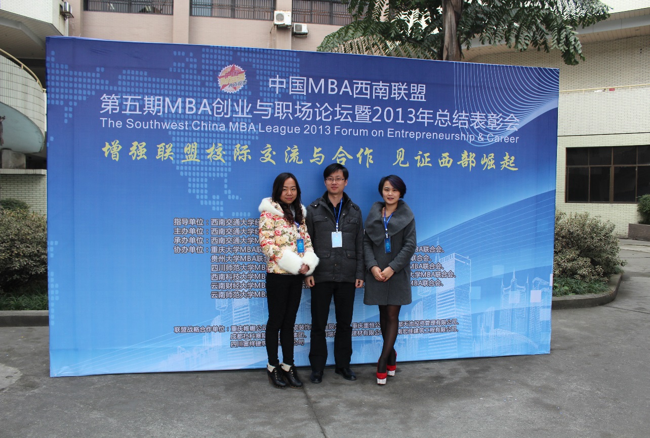 2013年12月21至22日,来自川渝云黔西南四省十八座高等学府的MBA学子齐聚西南交通大学,由中国MBA西南联盟、西南交通大学经济管理学院主办,西南交通大学MBA联合会承办的中国MBA西南联盟第五期MBA创业与职场论坛暨2013年总结表彰会在此成功举办。乐动官方网站第五届MBA联合会代表团的MBA中心学生工作部王军老师,联合会副主席秦平、秘书长任韵、文体部部长范秋月等同学参加了此次会议。