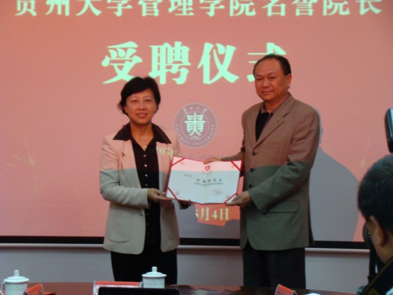 图1贵州大学党委书记龙超云向孙国强副省长颁发管理学院名誉院长聘书