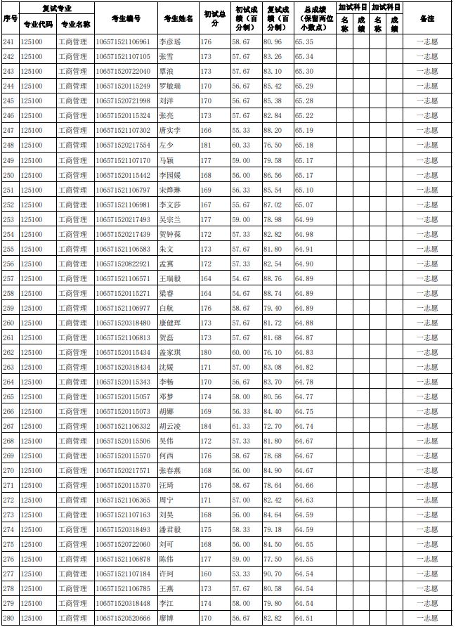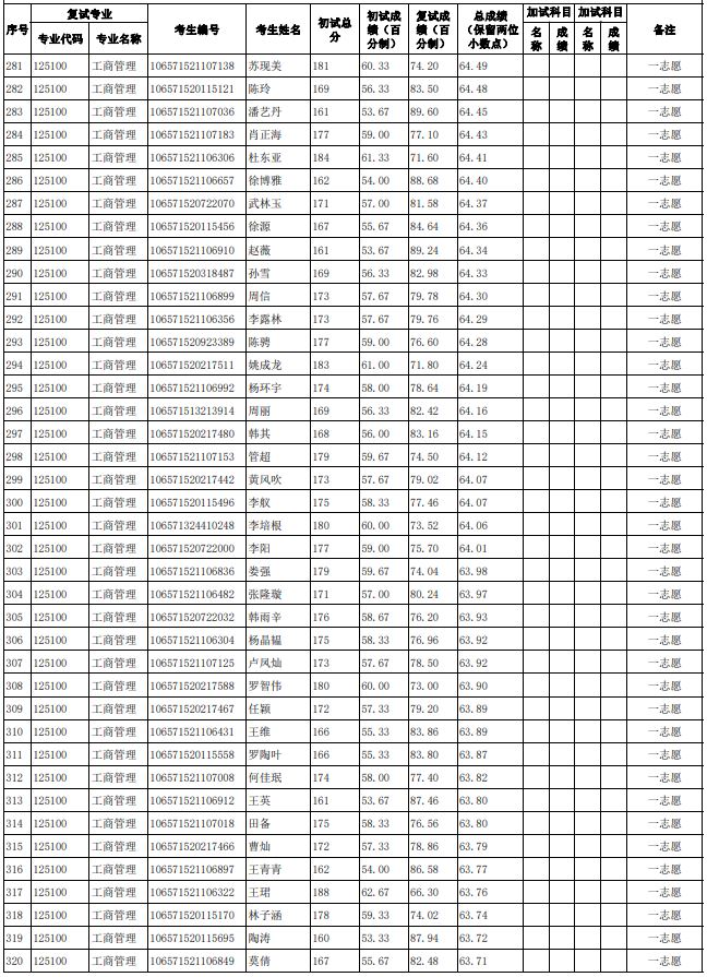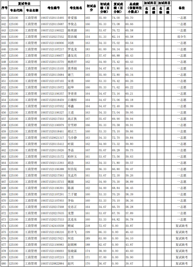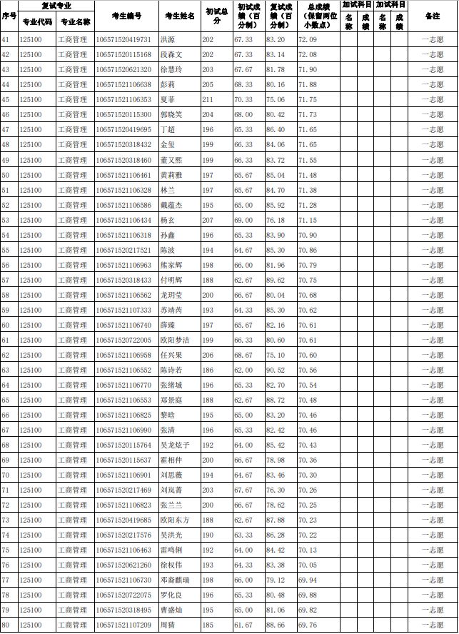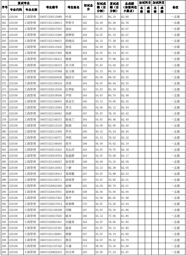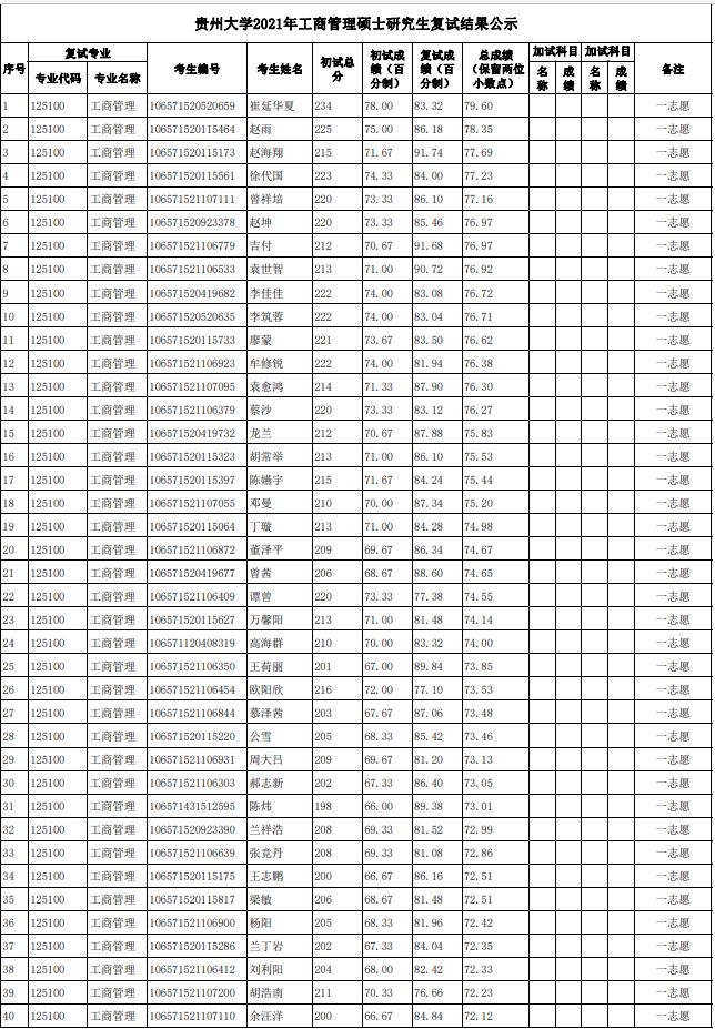 贵州大学2021年管理学院工商管理硕士(MBA)研究生复试结果公示