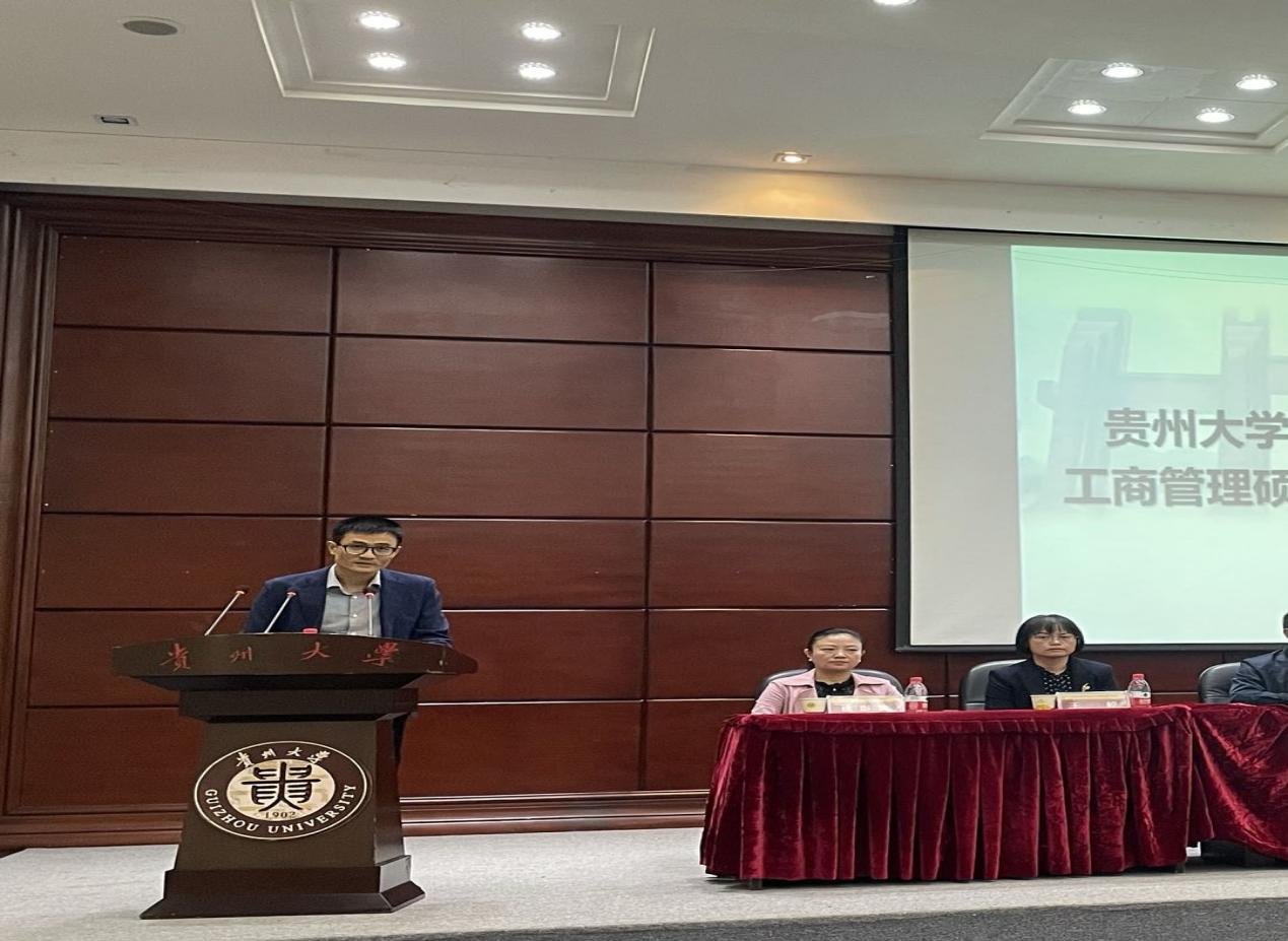 紧接着,管理学院MBA导师代表许为宾发言。他对同学今后的三年学习提出三点期望,一是将理论与实践相结合;二是重新塑造人格,突破自己的人格限制;三是将所学的知识服务贵州经济。