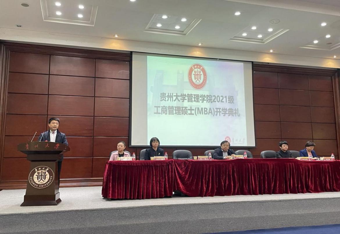 2021年10月10日,乐动官方网站MBA教育中心在东校区行政一号报告厅隆重举行2021级MBA新生开学典礼。此次开学典礼由MBA中心副主任何跃勇主持,贵州大学研究生院副院长张伟副教授,乐动官方网站党委书记王秀峰教授、贵州人民武装学院(贵州大学人民武装学院)副院长、乐动官方网站副院长王婷教授,乐动官方网站副院长周莉莉教授,乐动官方网站副院长宋山梅教授,乐动官方网站副书记洪影秋老师,管理学院MBA导师代表许为宾副教授,管理学院各科室负责人、部门负责人、系主任,MBA教育中心全体工作人员、班主任,2021级MBA新生共300名师生参加了开学典礼。