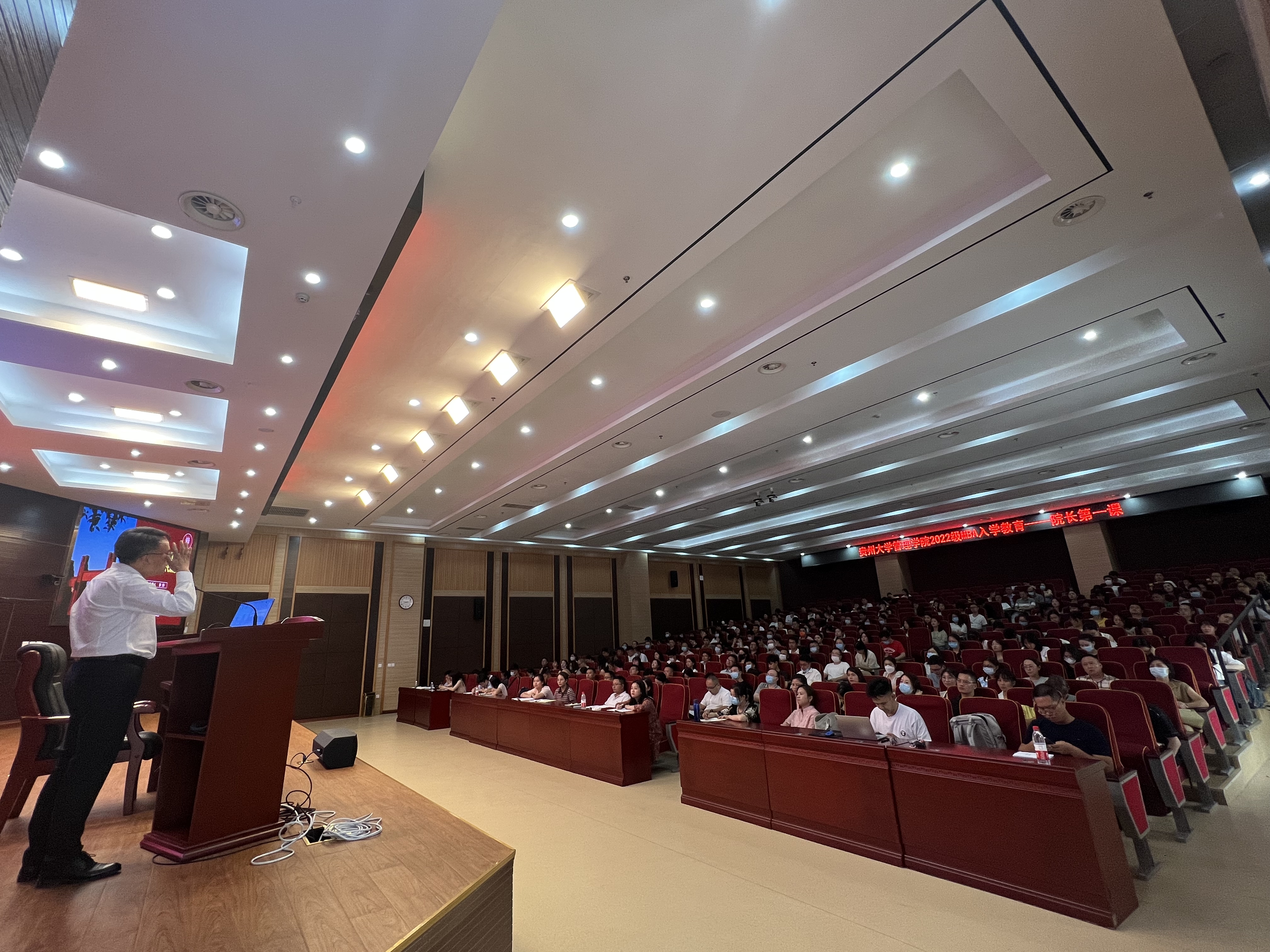 2022年8月25日下午,乐动官方网站MBA教育中心在东校区大礼堂隆重举行了“乐动官方网站2022级工商管理硕士(EMBA暨MBA)开学典礼”。乐动官方网站党委书记王秀峰教授、院长李烨教授、副院长(正处级)罗敏教授、副院长宋山梅教授、贵州大学人民武装学院副院长、管理学院副院长王婷教授、贵州大学党委正处级组织员周莉莉教授、MBA中心主任项凯标教授、MBA导师代表王军副教授,管理学院各科室负责人、部门负责人、MBA教育中心全体工作人员、班主任,2022级MBA、EMBA新生共400余人师生参开学典礼。