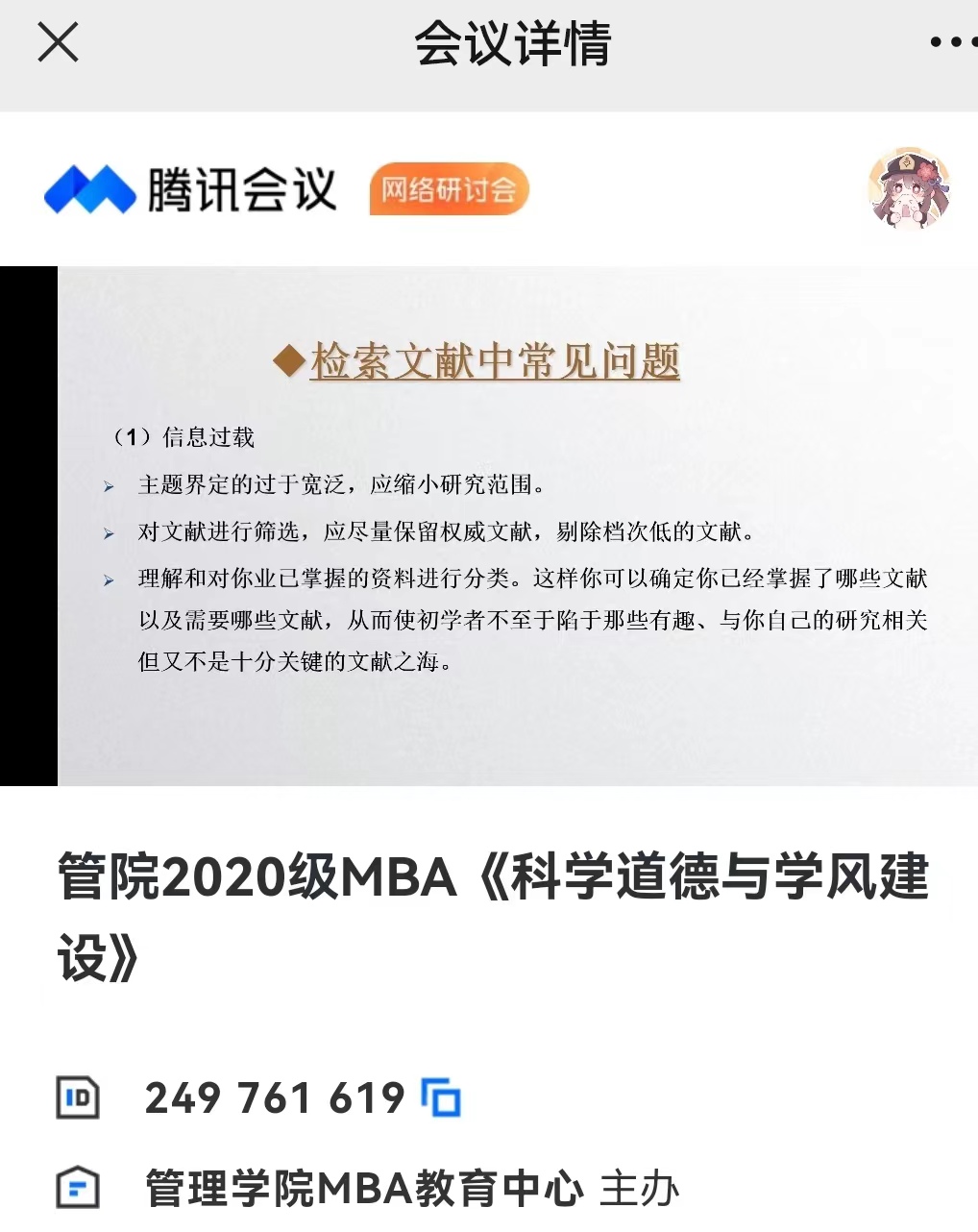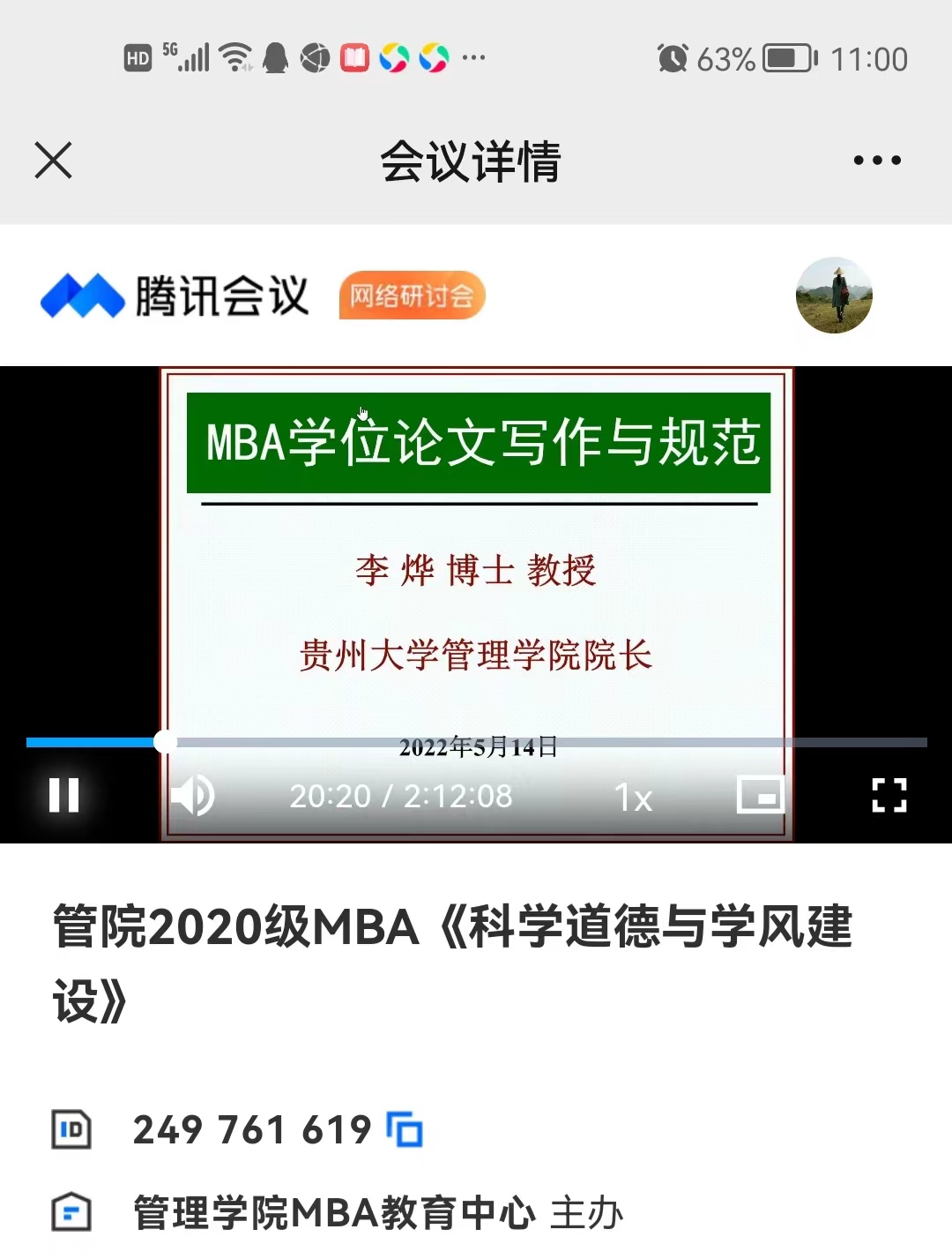 2022年5月14日,乐动官方网站MBA教育中心以腾讯会议的方式举办了《科学道德与学风建设》系列讲座,讲座分三场进行,分别由乐动官方网站院长李烨教授、贵州大学党委正处级组织员周莉莉教授、乐动官方网站许为宾副教授主讲,280余名2020级MBA学生全程在线聆听。会议由乐动官方网站MBA教育中心副主任何跃勇老师主持。