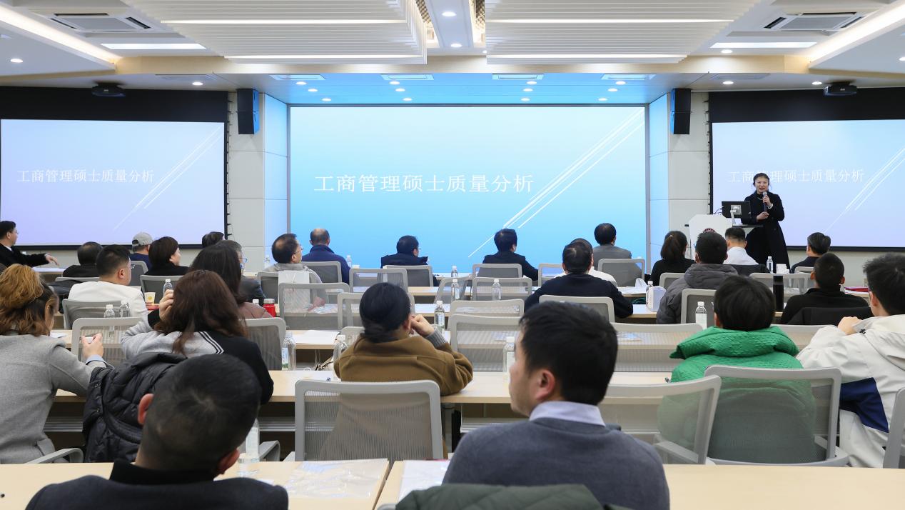 贵州大学研究生院学位管理科科长杨玥出席了本次会议,杨科长介绍了贵州大学近三年学位论文抽检的情况,并解读了《贵州大学研究生学位论文抽检结果处理办法》,还通报了学校2023年工商管理硕士(MBA&EMBA)学位论文的盲评情况。