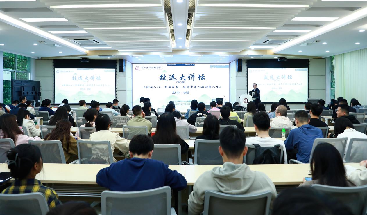 2024年5月12日,乐动官方网站“致远大讲坛”第八期讲座在东校区致远楼三楼报告厅顺利举行。本期讲坛由李烨院长主持,主讲人是贵州绿色发展战略高端智库首席专家——李裴。MBA2023级学生及本科生共130人参加本次大讲坛。
